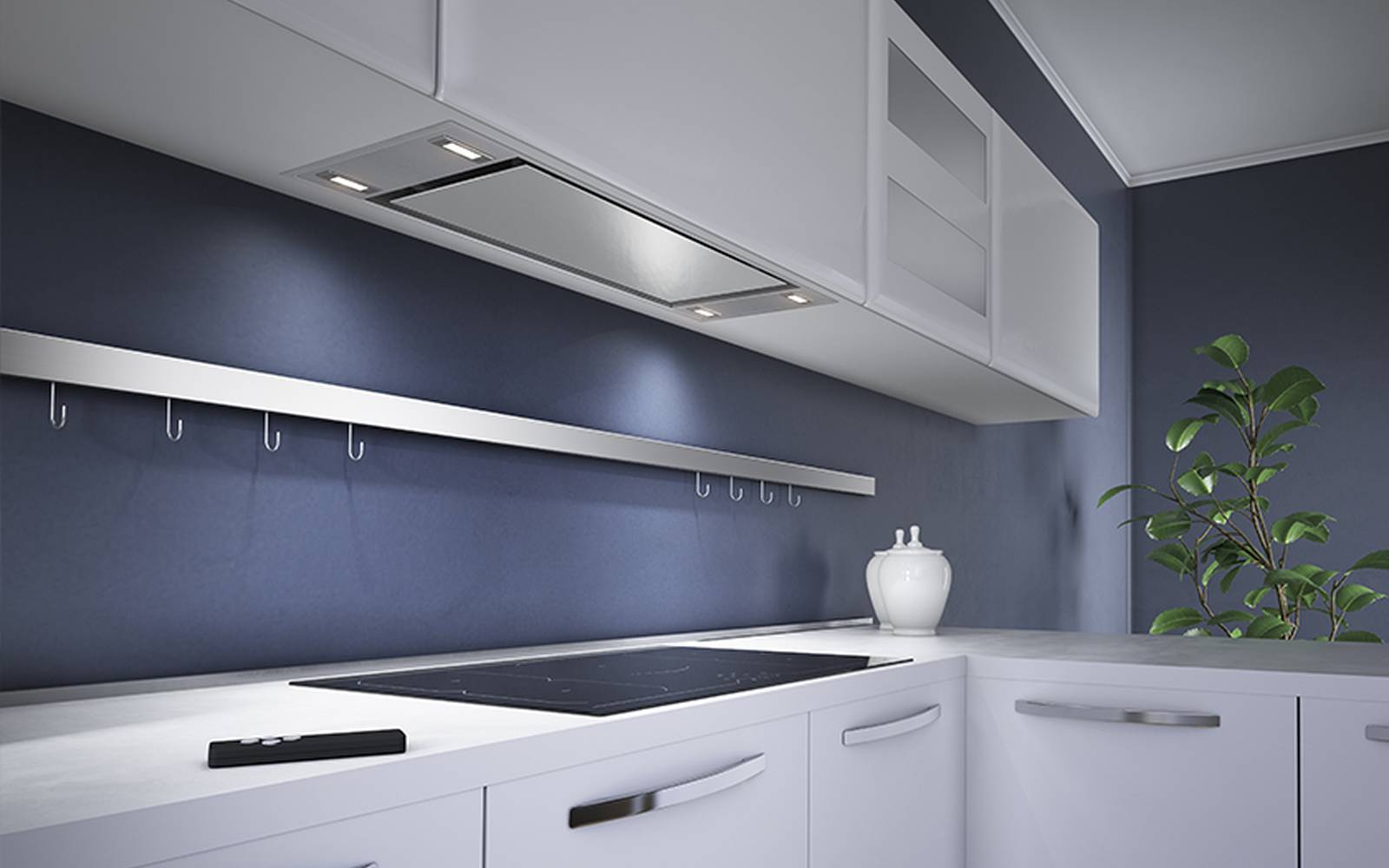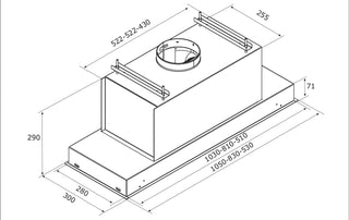 Finished in Stainless steel with the option of either a steel or black glass centre panel, the F96 gives users the option to either fit it into a ceiling space, or built-in to the base of wall units (please check dimensions). The F96 features four 2.2W LED lights for illuminating the workspace below. This model can be ordered in a variation of sizes, from 53, 83 and 105cm so please get in contact for more information on these models.